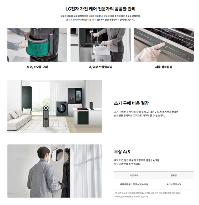 - 상세 내용은 LGE.COM 가전 구독 페이지 참조.