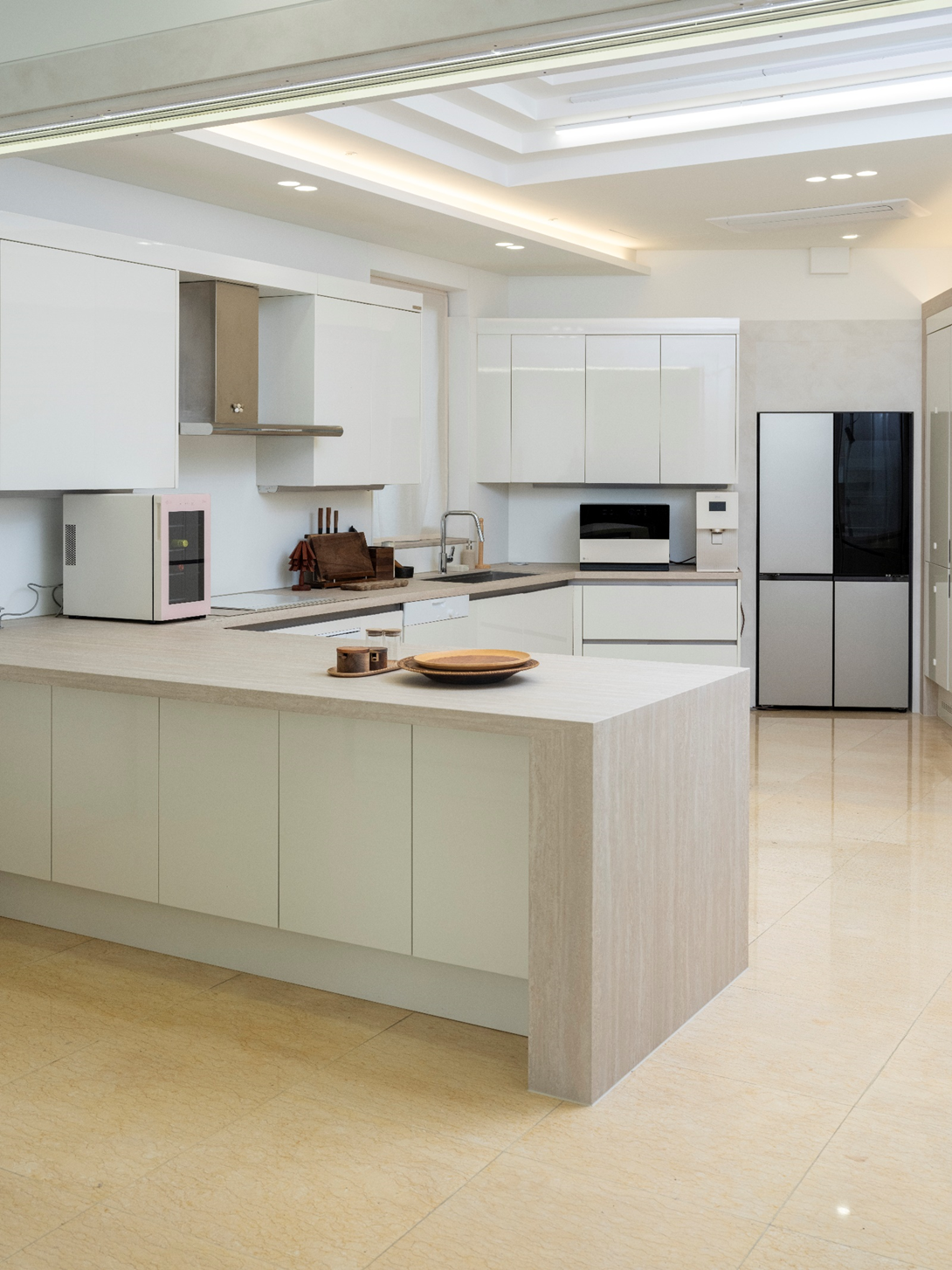 LG전자의 LG 디오스 오브제컬렉션 STEM 베이직 냉장고 Fit & MaX와 LG 디오스 오브제컬렉션 광파오븐 등의 주방 가전과 주방 인테리어와 조화롭게 연결되어 있어서